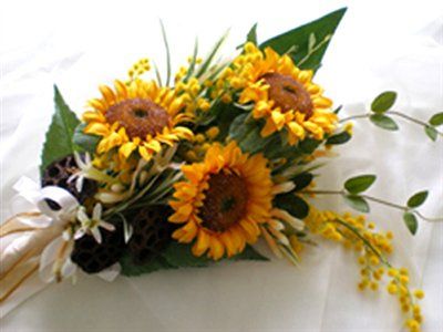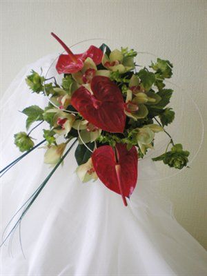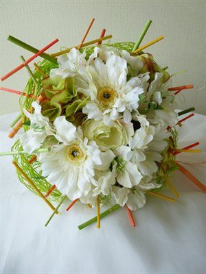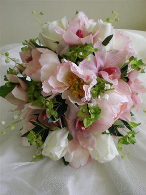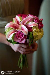 My friend is getting married next May and has chosen emeral green bridemaid dresses but is not sure what colour flowers to choose??