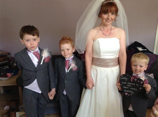 My mum and dad arrive. Mum is a bag of nerves, dad seems relatively calm and goes off to collect my niece who is one of my flower girls. The hairdresser arrives and does S's hair first, then mum's. While this is happening I'm bathing the boys. The best man then arrives with these from my husband to be