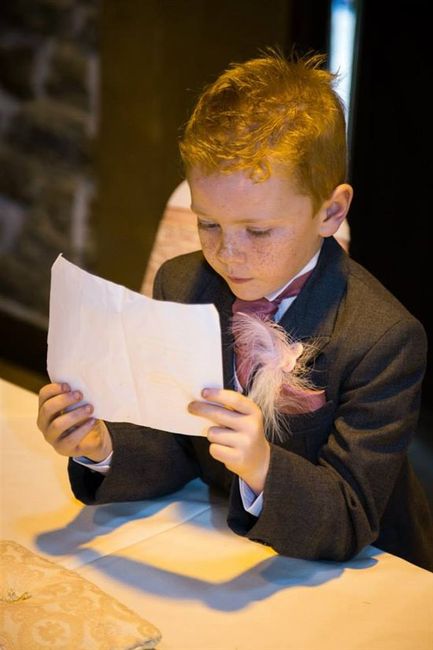At this short pause my veil got lifted, Mr Icklefee tells me I told him to do it while the hilarity was dying down. The vows were then said facing the right direction this time and then child #2 did his reading. He hadn't had much practise as up until the week before child #1 was meant to be doing it but child #1 took stage fright and #2 was easily bribed with the promise of a trip to Toysrus. He did a sterling job but I'm ashamed to say that while I was lovingly mounting a copy of Best Woman's reading on kraft card to match the rest of our stationary I totally forgot to do the same with child #2's