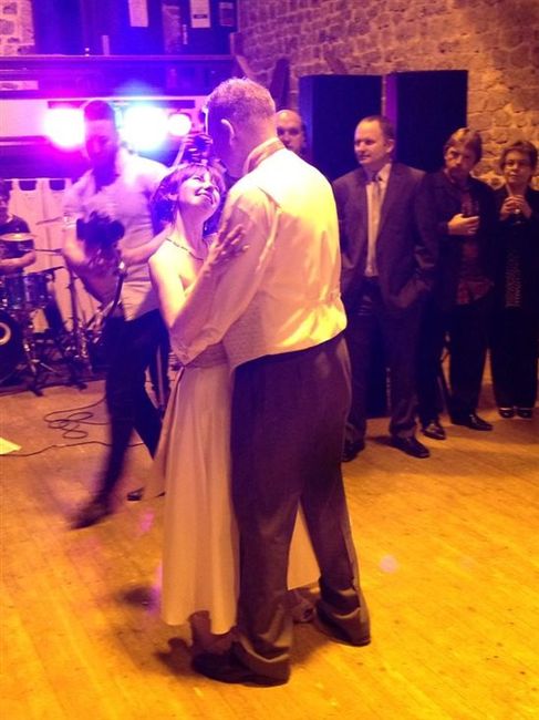 The lead singer of the band then asks for a round of applause for the newly weds (that's us!!!!) and call us onto the dance floor for the first dance. There was only one song that both Mr Icklefee and I had agreed on in the long list of possible first dance songs. His suggestions had ranged from Aerosmith to Enrique (seriously!) whereas I was set on Guns n Roses or Green Day. Jason Mraz "I'm Yours" stood out as being totally different to all the other suggestions and actually much more "us". The band did an absolutely fabulous version which can be heard here