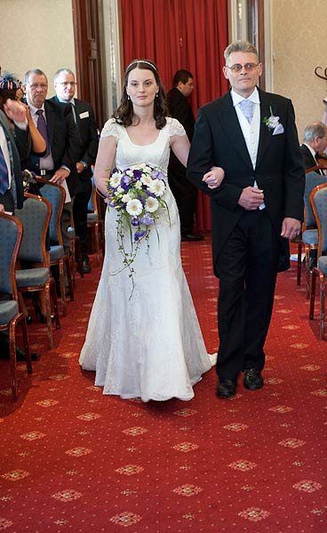 Wow graceyfly, that's amazing. Who's it by? I love that sort of big princess dress that's almost costume dress and different from the usual satin a-line dresses - my first wedding dress was a pale gold 18th century influenced design. Your dress wouldn't suit either me or my wedding this time round, but I still love it.