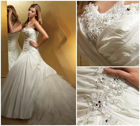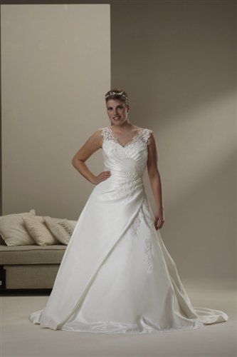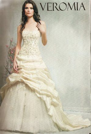 Same dress, modelled by two very different looking women and looking almost like two different gowns altogether. I saw the first pic in a bridal mag last year, went to the Veromia website where they only had the plus size model photo and had to go back and forth between the two pictures because I wasn't 100% that it was the same dress. Both ladies look absolutely lovely in it (although I very personally think that the second photo does the dress more justice, and not just because of my dodgy scanner ruining the first one!).