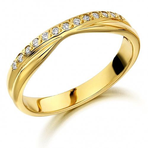 Went wedding ring shopping today and was certain I was just going to have a plain 2mm platinum band... My ring looks roughly like this... Platinum, 13 diamonds: