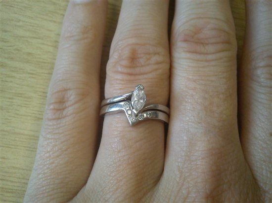 Ur wedding ring is same as mine :-) beautiful aren't they and the ER diamond fits perfect into the dip, my ER is set like yours so can be hard to find a ring to sit next to it. I got the plat one, was it from Goldsmiths? X