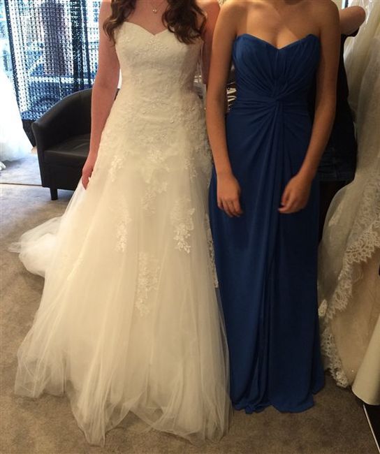 Just to throw a curveball, I'm wearing a Dessy bridesmaid dress for our big day...