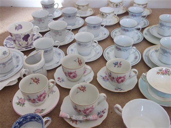 - Massive bundle of vintage china; 6 side plates, 1 sugar bowl, 1 milk jug, 25 saucers and 26 tea cups.