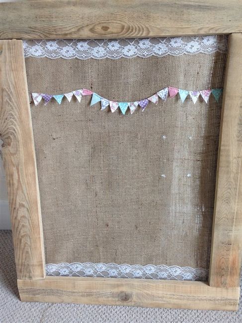 Hessian and lace table plan with wooden easel: £20