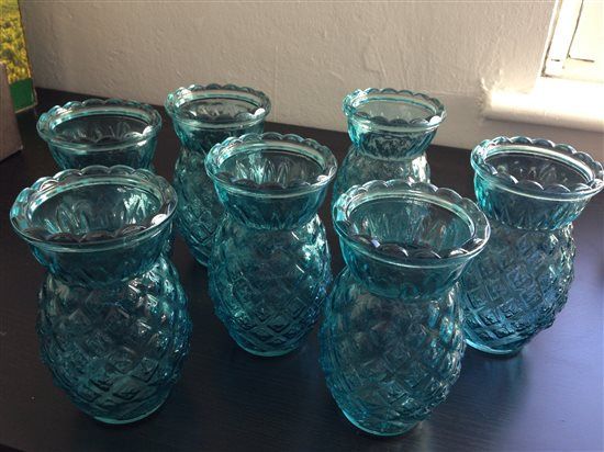 7 x small blue glass vases: £16