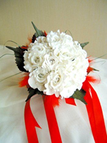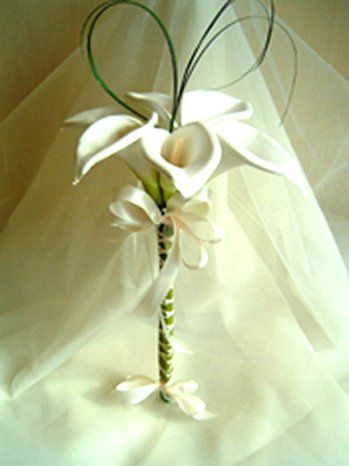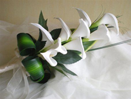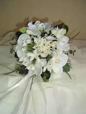 I am looking for all white wedding flowers (maybe with a touch of greenery) for both myself and my bridesmaids...we are getting married in July, so I think most things (except peonies) will be in season...I think I want small bouqets, quite natural looking, with maybe only one or two flowers. I don't want a bouqet that spreads out down my dress...do any of you have any snaps or pictures you could upload to give me some ideas? I am not getting married until 2012 so it's no rush, but I just wondered if any of you had any thoughts?