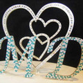 Excuse the size... anyway, I was thinking along the lines of a glass heart with our names and date etched into it as a topper until I found these crystal toppers... and then the BM fascinators, good...