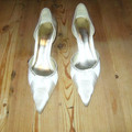 Worn once. They have a kitten heel and diamante trim round the front, one tiny diamante is missing but not noticable. I bought them off ebay but they're too high so I need to sell. £10 plus P&P or...