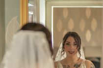 Our wedding ceremony was at 2pm. Once it got dark me and my husband went over to the Cathedral and took pictures with the Christmas lights. Unfortunately (or fortunately) it rained...