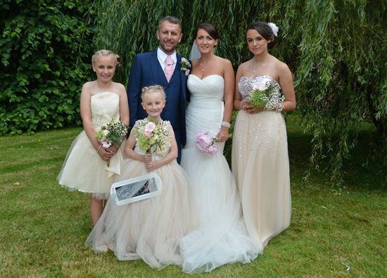 Stunning dress any questions please ask its the dress to the left, cant see it but theres a big bow at the front also selling dress on the right, size 10-14 due to corset back offers around £30