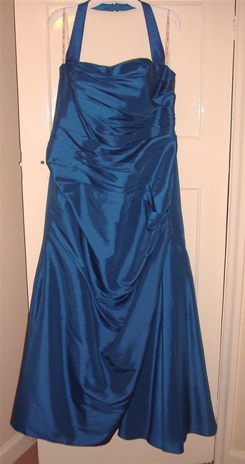 I got married on 17/12/11 and have two gorgeous petrol blue taffeta Mark Lesley bridesmaid dresses, style 1147. Size 10 and size 24. Both have also have had a halterneck strap in the same fabric made...