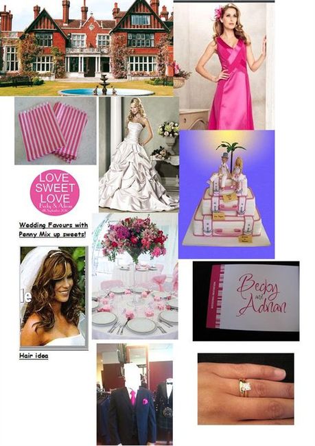 I thinking of having a pink rose type theme, for the bridesmaids i think thinking Platinum dresses with Pink accents. Flowers(of pink and cream) what do you think? sorry bout the huge pics! The wedding cake: just an M&S Cake: ( was going to take...