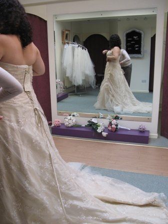 Right I'm in love with my dress again, although I'm not very keen on the photos, I think they don't do it justice at all and as the dress is still so big it makes me look a bit like a meringue! It's going to be shortened and reduced from all angles...