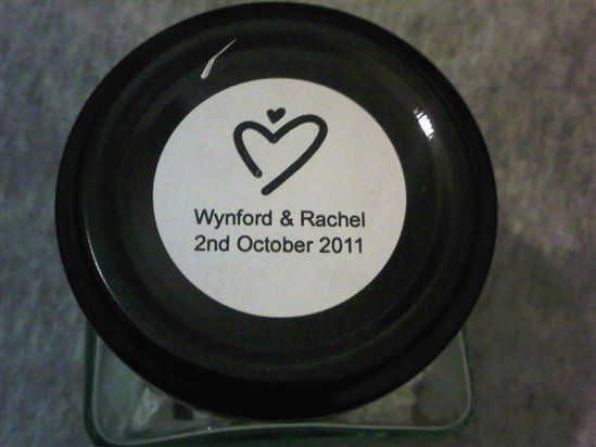 Hey all, Just interested in getting some thoughts on one of the ideas i have for favours for my EXTREMELY large wedding... . This is the jar filled with black and white "rock" sweets that say "Happiness, Love, Health". The jar is a sample its pretty...