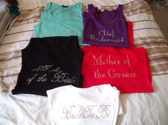 Childrens stockings for the activity bits to go in. I have to make tags for them yet though. They took ages as I had 12 to make. and personalised T shirts for the morning of wedding. Sorry they are so big!