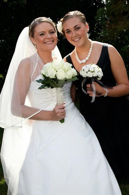 Just wanted people opinions on this dress with a low side bun and a hair comb in, with this corsage. I have four bridesmaids and i'm getting married in June. (The rose would be white though not pink)