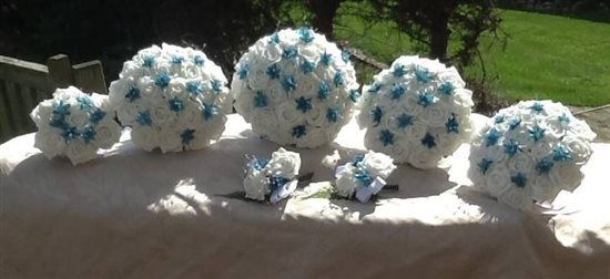 I'm trying to decide what colour flowers to have with my teal bridesmaids? First I thought I would go with pink but now I am starting to think ivory/white flowers would look nicer. Just wondering what colour other people think would go best?? Thanks...