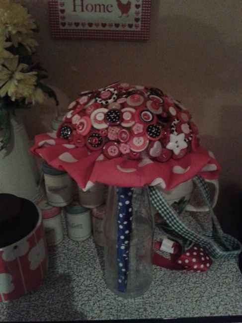 4295 days agoAm selling my button bouquet - I made it myself for my own wedding. http://www.ebay.co.uk/itm/301248275514?ssPageName=STRK:MESELX:IT&_trksid=p3984.m1555.l2649 I also sell custom cake toppers - see here They are made exactly to your requirements,...