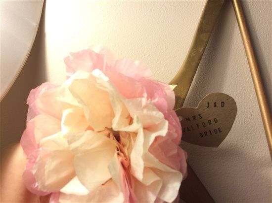 These re are my cake toppers, I'm thinking of making pink ones also. Not sure yet though. started my confetti, I punched them with a heart punch. The gold wouldn't work so well so just cut it all up into pieces! Now this is going to take me ages to...