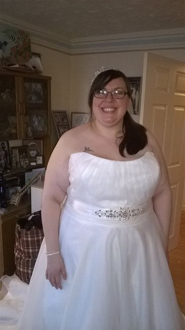 I picked up my dress today. I have to take it back for alterations in a few months, it seems really big now but even though it doesn't fits I love it. The lady's in the shop and my big sister were laughing at the fact I couldn't walk and was kicking...