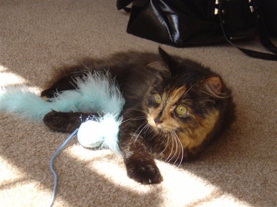 Got a tad bored at the weekend and as my OH has given me his old DSLR camera, I thought I'd have a play around and get some pics of my little monkeys! So here's Clyde, my fatty fluffbum bi-color persian in play mode! And Clover, she's an exotic...