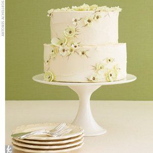 I am having cake wobbles i went to see the cake lady and we decided on having a two tier cake ( each tier with 3 layers so extra tall ) on a glass cake stand. I don't have a flash as we made it up as we went along but plan was ivory, with possibly an...