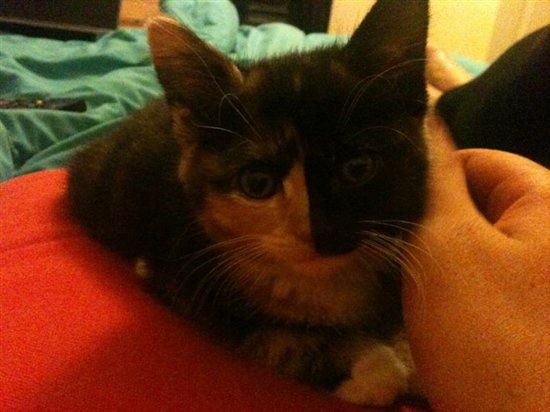 I am pleased to introduce you all to Poppy. We picked her up last night, not the best picture because she was hiding behind OH's hand. xx