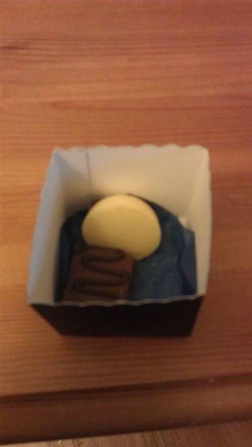 We decided to kinda 'half-DIY' our favours and bought some favour boxes that we would fill ourselves with 2 chocolates. We're now at the stage where we have the chocs, boxes & tissue paper all ready to go. However, the boxes are so deep the 2...