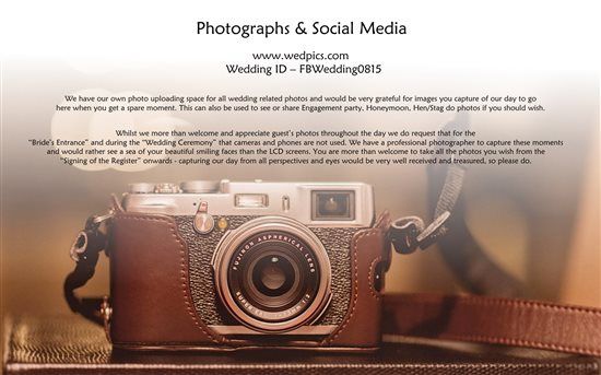 Hi! I just wanted to get some opinions on guests uploading pictures to social media during the day. I'm not particularly keen on the idea given that they are the people we wanted to share our day with, not hundreds of unknown people on FB etc. Is is...