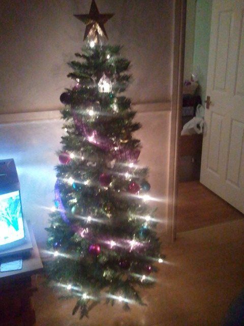 Just finished decorating ours... poor thing is a bit wonky, branchless on one side and with a giant drunk santa on top- beautiful!