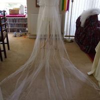 5444 days agoI am selling my Cathedral length veil with flower edging. Lovely veil that has a comb attached ( so you can put it straight in your hair ) The length of the veil from the comb to the end of the veil measures at 266cm I bought this a week ago but it...