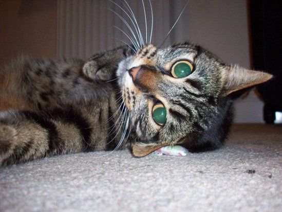 Got a tad bored at the weekend and as my OH has given me his old DSLR camera, I thought I'd have a play around and get some pics of my little monkeys! So here's Clyde, my fatty fluffbum bi-color persian in play mode! And Clover, she's an exotic...