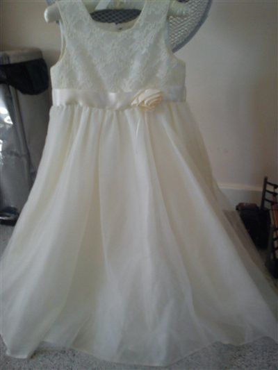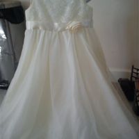 5038 days agoPretty bridesmaid dress/ flower girls dress ivory/ cream in colour size aged 7/8 years £20 (in pics i see a pink shade over dress that is a reflection off my sons toys not on the dress)