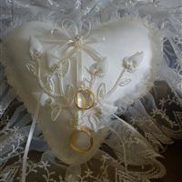 5038 days agoring cushion ivory in colour stunning little thing with 2 fake gold wedding bands £7