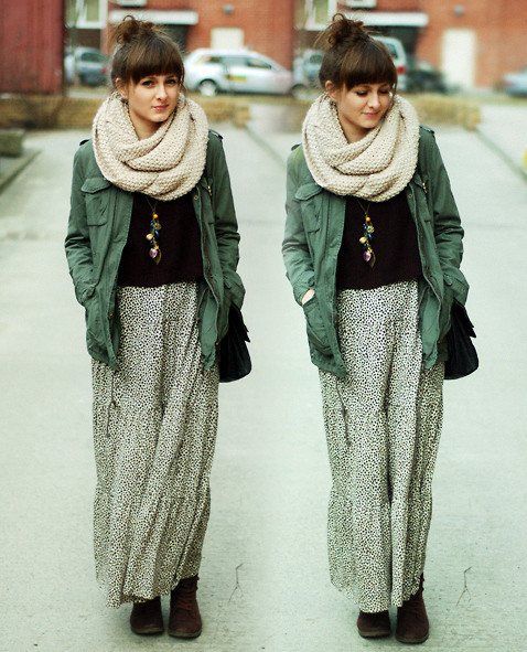 I have quite a collection of maxi skirts and dresses, which I've worn all summer with flat sandals or flip flops. I'm tall anyway, but I always find that they look better with flats than heels. Now that it's winter, I'm trying to think of what shoes...