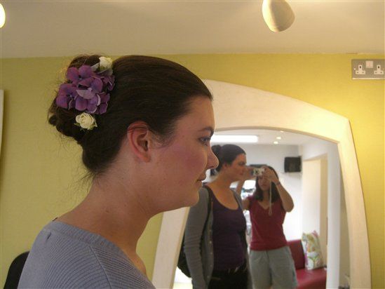 Had hair & make up trial yesterday. Very pleased. However the purple flowers were very fragile and didn't survive the day, so gonna have all white roses on the wedding day. Very pleased with make up too. Don't normally wear make up so was afriad...