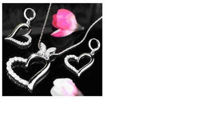 5761 days agoWhite gold plated necklace and earing set with cubic zirconia - Open heart and butterfly design - Necklace Size: 15.5" - 17.5" (39.2 cm - 44.5 cm) - Pendant Size: 1.75" X 1.5" (4.5 cm X 4 cm) - Earrings Size: 1" X 1" (2.5 cm X 2.5 cm) - Brand New -...