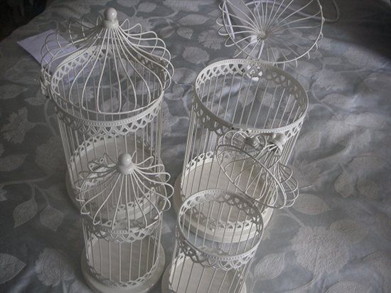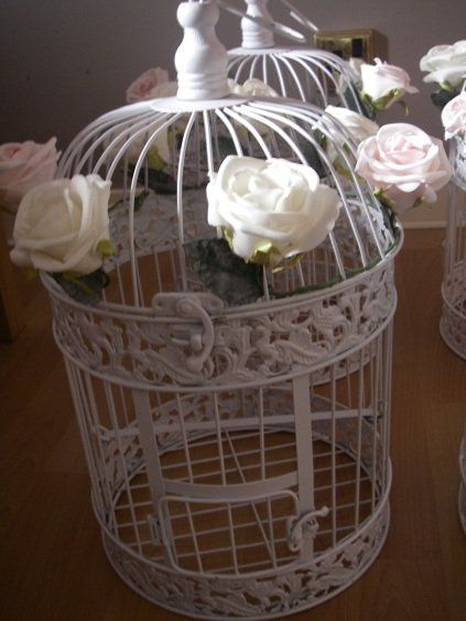 One very large birdcage (minus the candle) ivory roses and pale pink with butterflies £25 can email me on linrus@live.co.uk xx