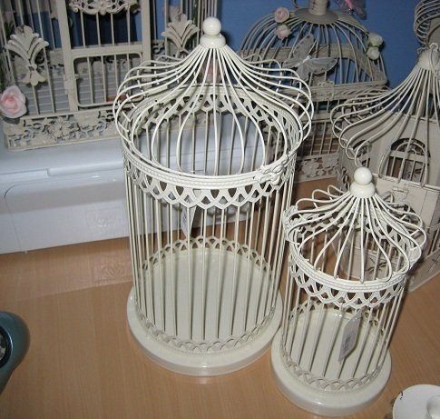 White large round bridcage 43cm high with roses included £10, have much more. email linrus@live.co.uk
