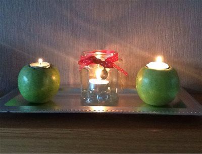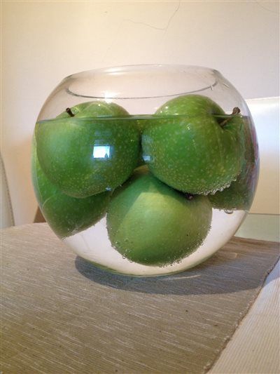 We're struggling to decide on our centrepieces and wondering if anyone can help. I've mocked up a couple of ideas; our theme is NYC and colour green, hence tying in the apples These ones would actually have cream or green candles, but these purple...