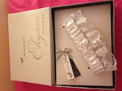 1 white garter New in pretty presentation box £3 + postage 1 ivory garter new in packaging £1 + postage Ended up buying a custom made football garter as a surprise for my h2b so have no need for these now! You can email me at Diane.mcmurray@ymail.com...