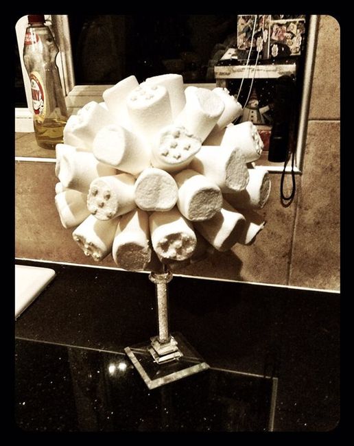 made my first sweet tree as a centrepiece for the sweet table. Used a candle stick for the base which I can use after wards. White cooking chocolate to stick everything on. Small white stars stuck on marshmallows. Really pleased with it although it...