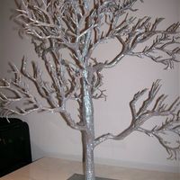 Hi I have a silver tree that I used as a 'wish tree' for our guests to write their messages on during the evening reception. I also have a box of spare white wooden hearts with white and silver ribbon...