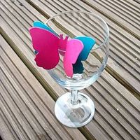 ? Alternative option will be to just 'homemake' little rectangular 'luggage tags' with a teal/turquoise ribbon through and names in pink - then either dropped in wine glass/ tied round glass...