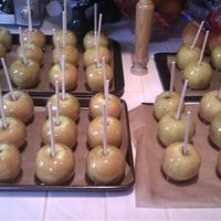 Omnomnom i did a small trial run of toffee apples that we are making for our favours. after about half an hour stood over a pan of boiling sugar we have... ta-daaaah! 3 ludicrously tasty crunchy...