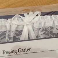 Brand New, in sealed box, a white lacey garter with pearl and bows, ideal for tossing at your wedding or for a Hen party! It was a gift from a Bridesmaid but I didn't use it. £5 + £2.50 postage or...