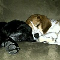 Show me your puppies!! Here's my brother's two for a good start (though they're no longer puppies): Tyra is half weimaraner/black lab, and derby is a beagle!